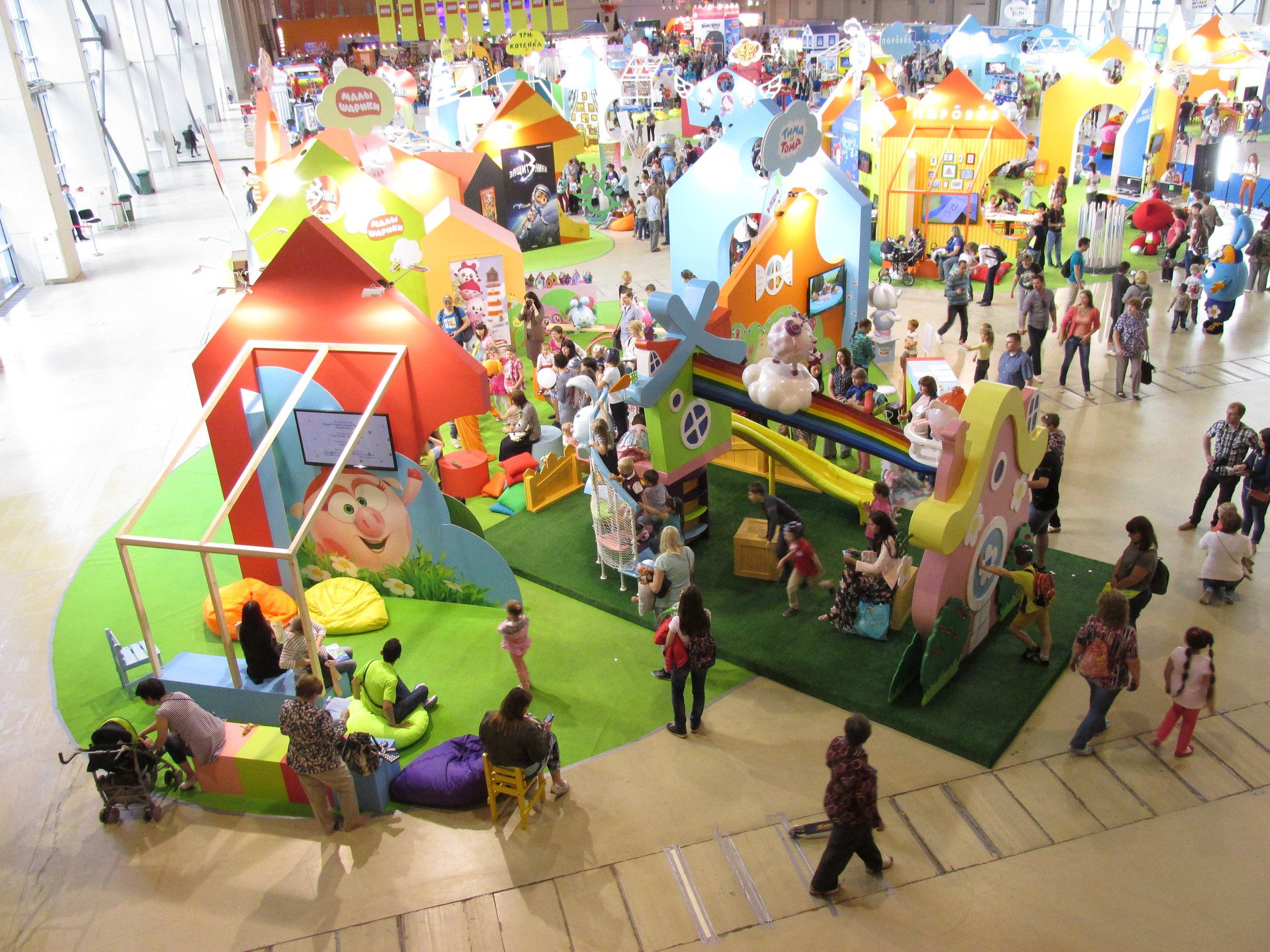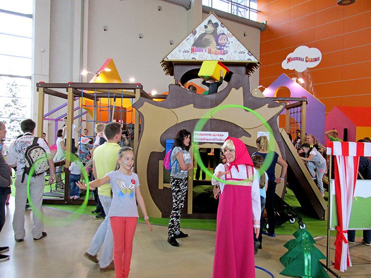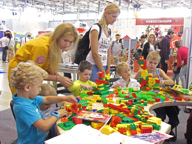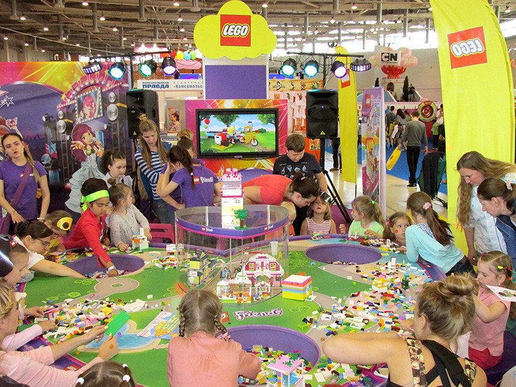 Por cortesía de fabricantes de juguetes como Lego, Hasbro, Robostanciya (Робостанция) o Mosigra (Мосигра) los visitantes más pequeños han elaborado robots, figuras, han disparado con arco y flechas, amén de balas de espuma y chorros de agua. Además los stands de 'Masha y el Oso', 'Smeshariki' y 'Tres gatitos', entre otros, han creado divertidas atracciones donde se los protagonistas del evento se lo han pasado en grande mostrando su destreza y jugando en equipo.