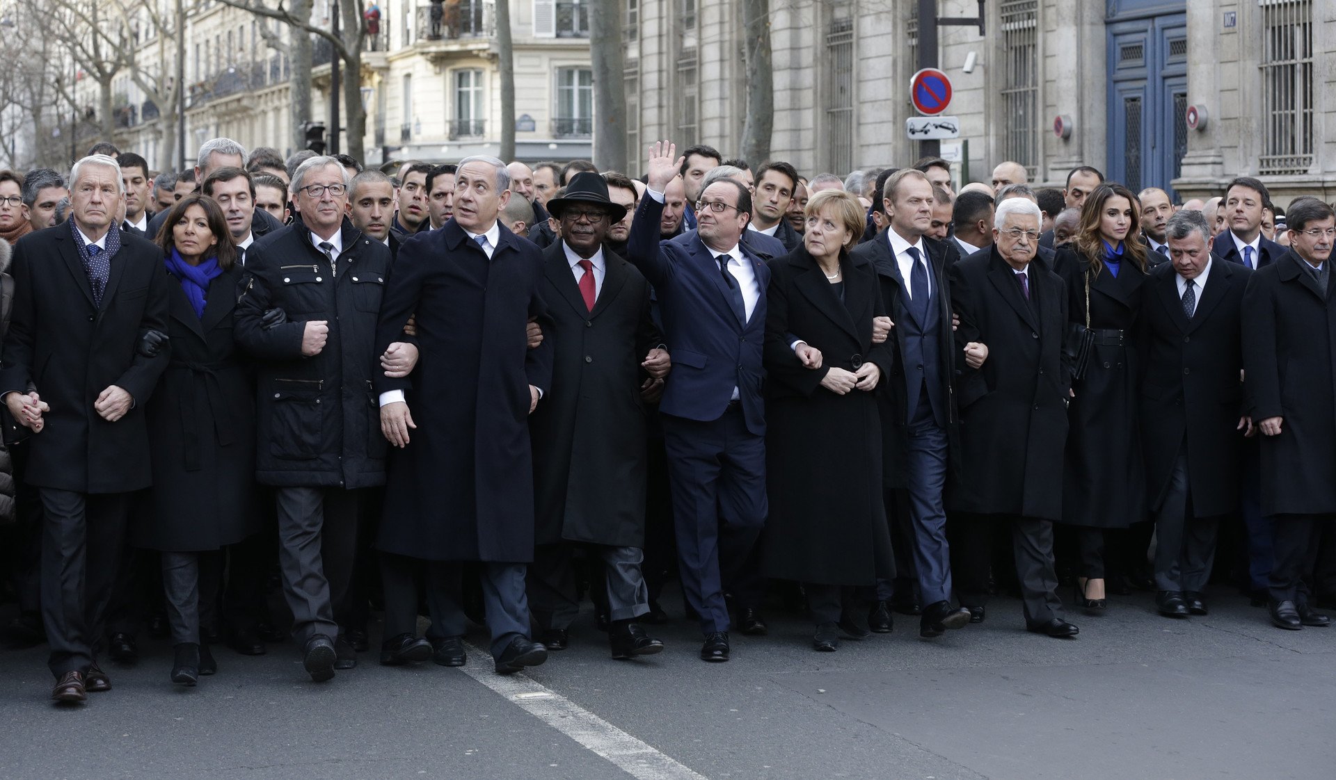Esta foto de los cerca de 50 líderes políticos de todo el mundo que participaron en la marcha de apoyo al pueblo francés contra el terrorismo se convirtió en una imagen simbólica de este histórico día que reunió al menos 3,7 millones de personas en toda Francia, informa 'Huffington Post'.