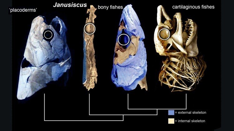 Las características externas del cráneo fósil llevaron a pensar que pertenecen a los peces óseos (osteíctios), pero cuando científicos de la Universidad de Oxford y el Imperial College de Londres, en Reino Unido, utilizaron tomografía computerizada para observar el interior del cráneo se encontraron con que la estructura que rodea el cerebro era una reminiscencia de los peces cartilaginosos (condrictios) como los tiburones y las rayas. Estas 'dos caras' del fósil de pez hicieron que los científicos lo bautizaran como 'Janusiscus', en alusión a la doble cara del dios romano Jano, como se detalla en un artículo sobre la investigación que se publica esta semana en la revista 'Science'.