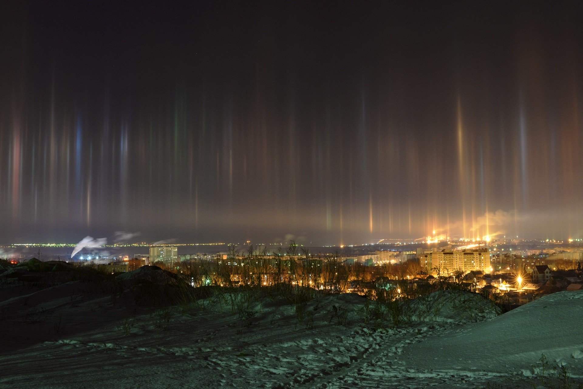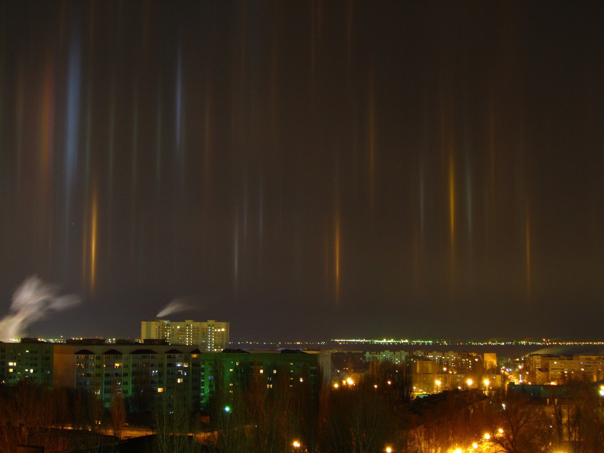 Los residentes de la ciudad rusa de Sarátov fueron testigos la noche del martes de un fenómeno atmosférico inusual denominado "columnas de luz", informa Zvezda.