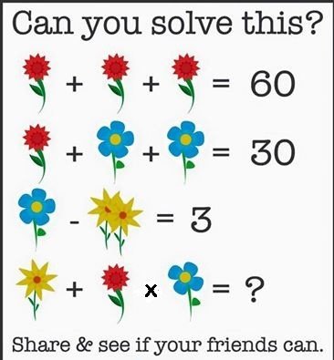 Una nueva ecuación matemática aparecida en la página de Facebook de Trending in China desafía a los internautas en Internet y en las redes sociales a averiguar cuántas flores hay en total.