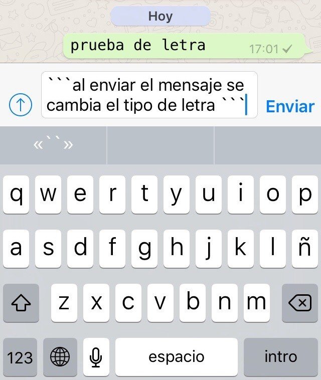 WhatsApp ofrece la tipografía FixedSys. Para activarla hay que poner tres acentos graves (`) antes y después del texto, informa 'El País'.