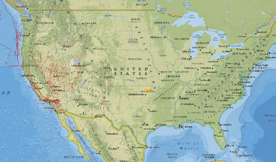 El sismo se originó a 6,6 kilómetros de profundidad en el estado de Oklahoma y tuvo una magnitud de 5,6, como informa El servicio Geologico de Estados Unidos. Su epicentro fue localizado cerca de la localidad de Pawnee, en el estado de Oklahoma. El sismo ha afectado a cuatro estados: Kansas, Oklahoma, Texas y Missouri.