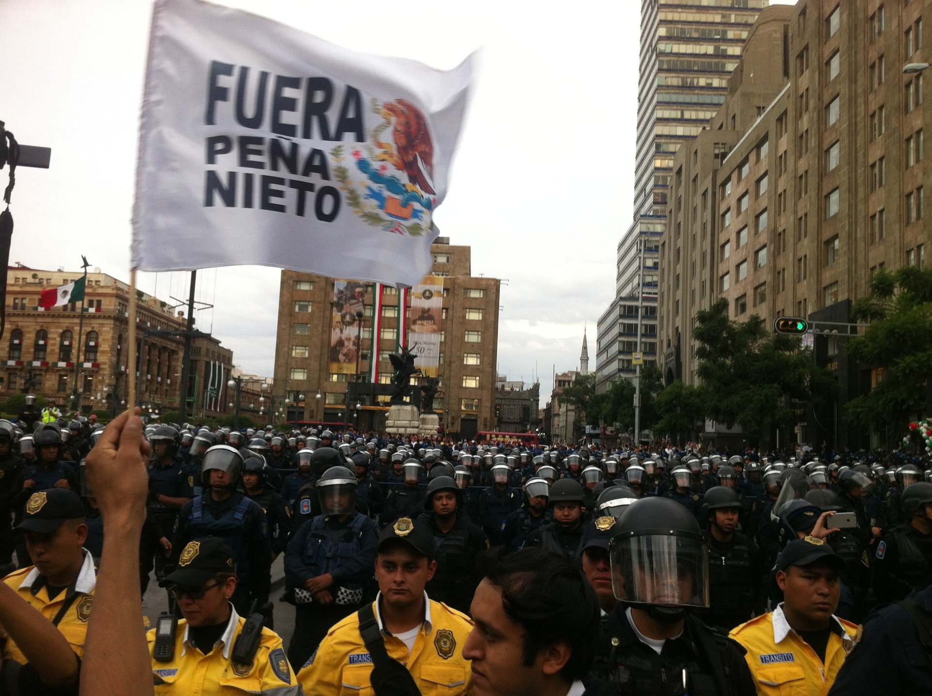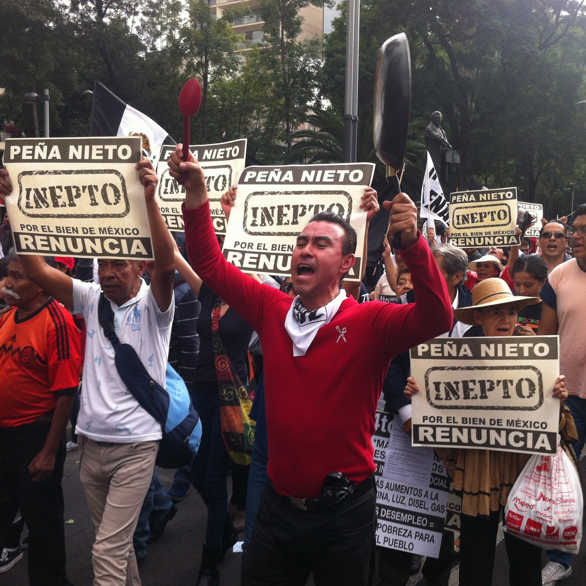 Durante la manifestación, las personas asistentes gritaban consignas como: "Guerrero [el prócer de la independencia mexicana] decía, la patria es primero; pero el traidor de Peña la vende al extranjero" o "Yo no quiero gritos, no quiero puentes. Yo lo que quiero es que se vaya el presidente".