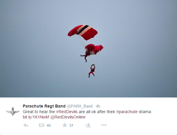 Paracaidista salva la vida a su compañero en pleno espectáculo