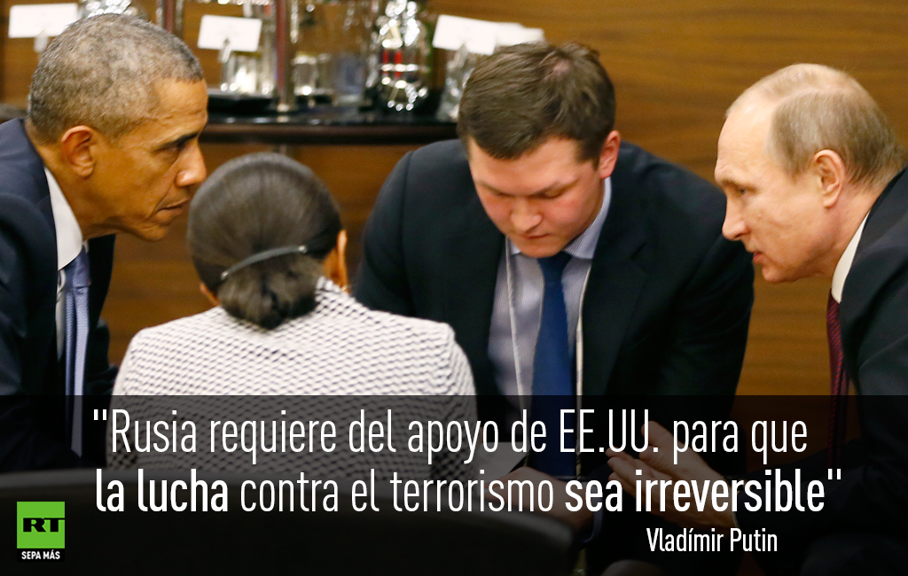 "Francia está en guerra contra el terrorismo", declaró Hollande este lunes. Según el mandatario, esta guerra contra "los asesinos que amenazan al mundo entero" debe llevarse a cabo en el marco de una gran coalición. "En este contexto me reuniré en los próximos días con el presidente Obama y con el presidente Putin para unir nuestras fuerzas y lograr resultados", declaró el presidente francés.