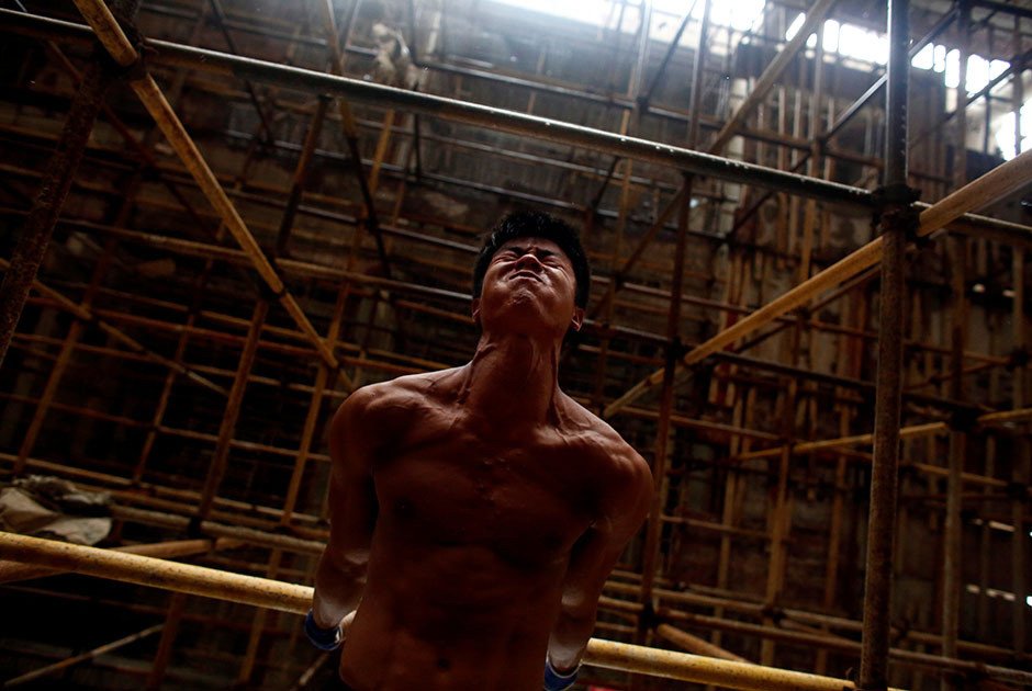 Shi Shenwei, un obrero de 23 años, se dedica a realizar deporte durante las pausas en su trabajo en la construcción en la provincia china de Fujian. Una de sus rutinas diarias es balancearse en los parales, que le valido conquistar a miles de seguidores en las redes sociales.