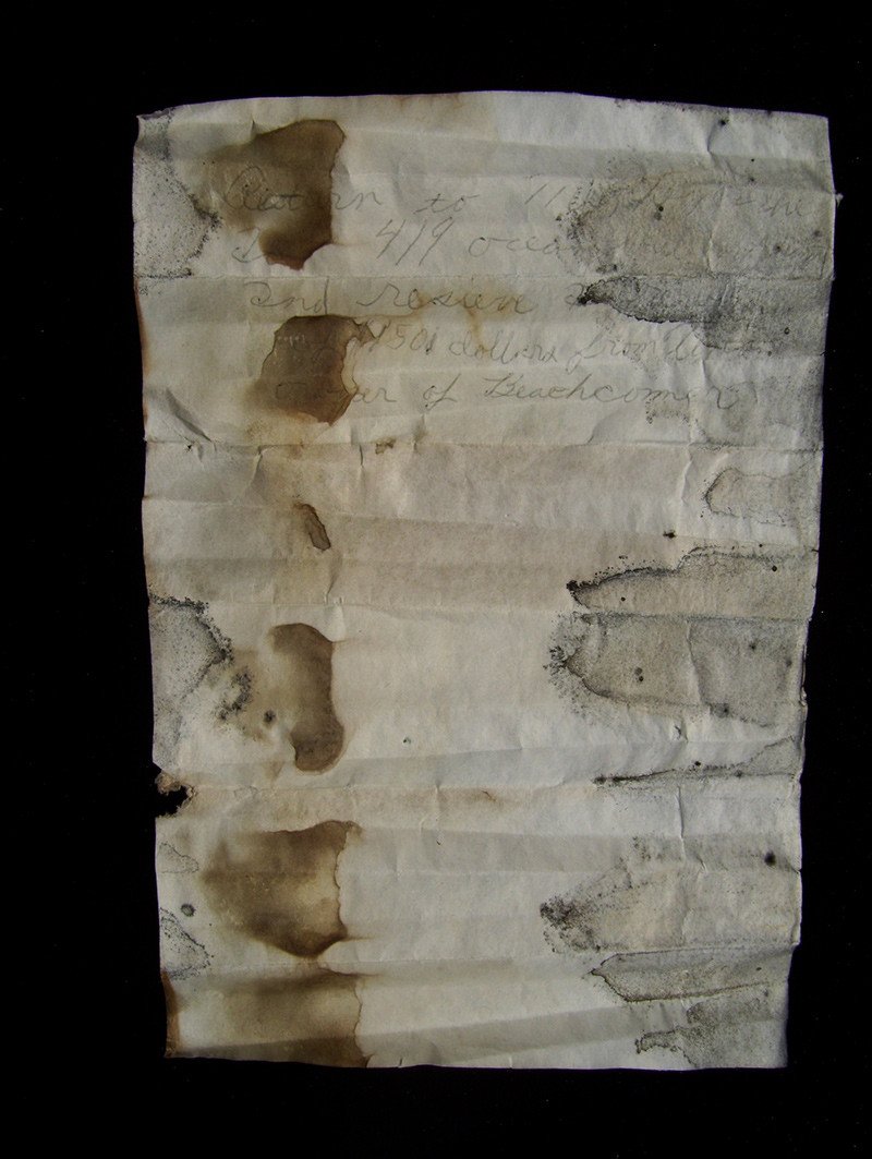 Sin pensarlo dos veces Buffington decidió hacer caso al mensaje, que pasó décadas flotando en el Atlántico, y llevarlo a su destino. No obstante, no fue tan fácil identificar la dirección, escrita en el papel, dañado por el tiempo y la humedad, ya que la misma calle podía encontrarse en los estados de Florida, Georgia, Carolina del Sur, Carolina del Norte, Washington, Oregón, Nuevo Hampshire y California. Entonces se centró en otro dato dejado en el mansaje: "Beachcomber", que resultó ser el nombre de un hotel en la ciudad de Hampton, en Nuevo Hampshire.