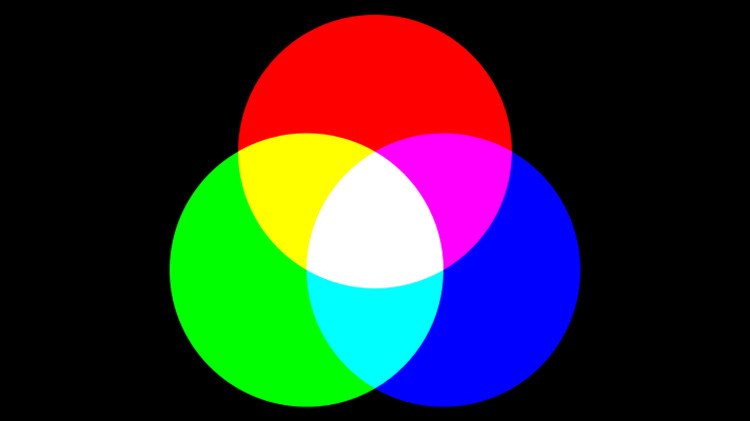 El color amarillo lo componen los conos sensibles a la estimulación por ondas de luz cuyas longitudes se corresponden al rojo y al verde, mientras que el azul está ausente. En el color magenta están presentes el rojo y el azul, estando ausente el verde. Finalmente, el verde y el azul resultan en el color cian. Al 'mezclar' los tres colores primarios resultan matices del gris, desde el blanco hasta el negro dependiendo de la saturación.