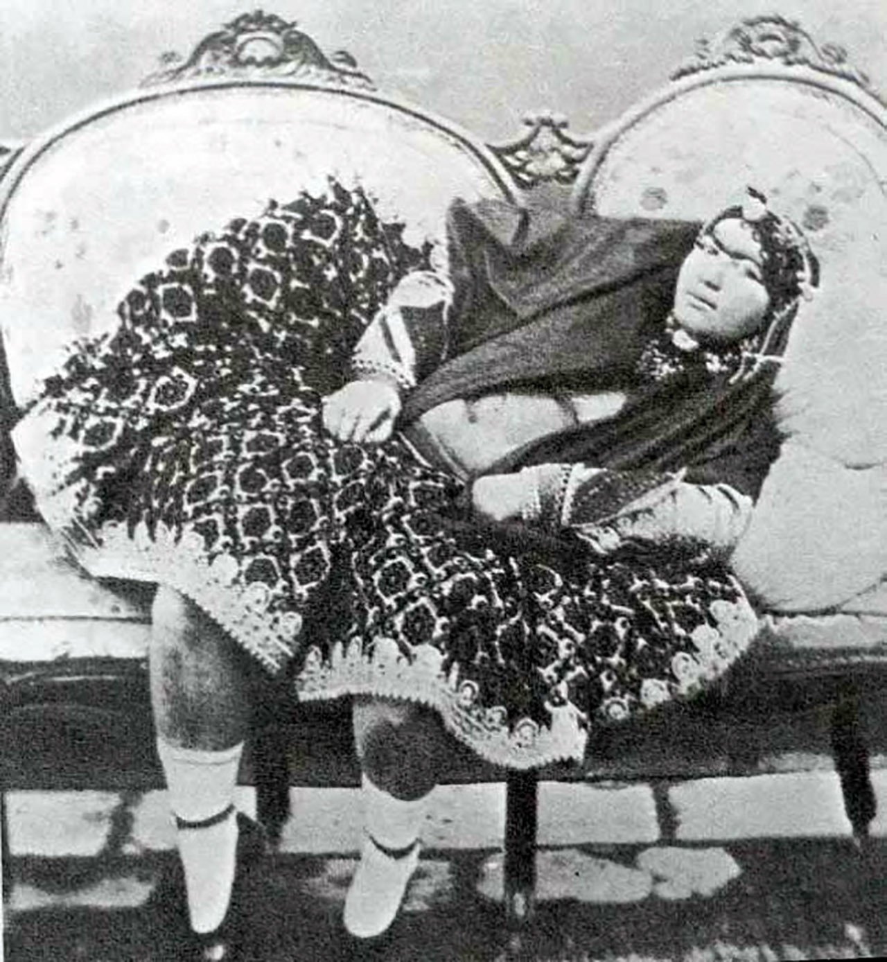 Según la leyenda, el Sah Kayar quedó encantado por las bailarinas rusas e introdujo ese tipo de vestimenta para sus esposas, que solo podían aparecer así frente a las cámaras.
