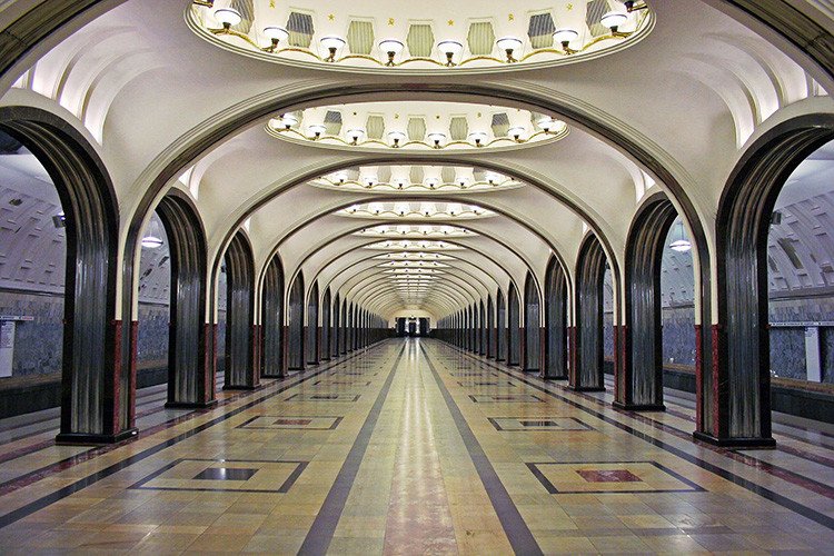 El metro de Moscú no solo es uno de los más bonitos del mundo, sino también uno de los más cómodos, pues en las horas punta, sus trenes circulan con intervalos de apenas un minuto.