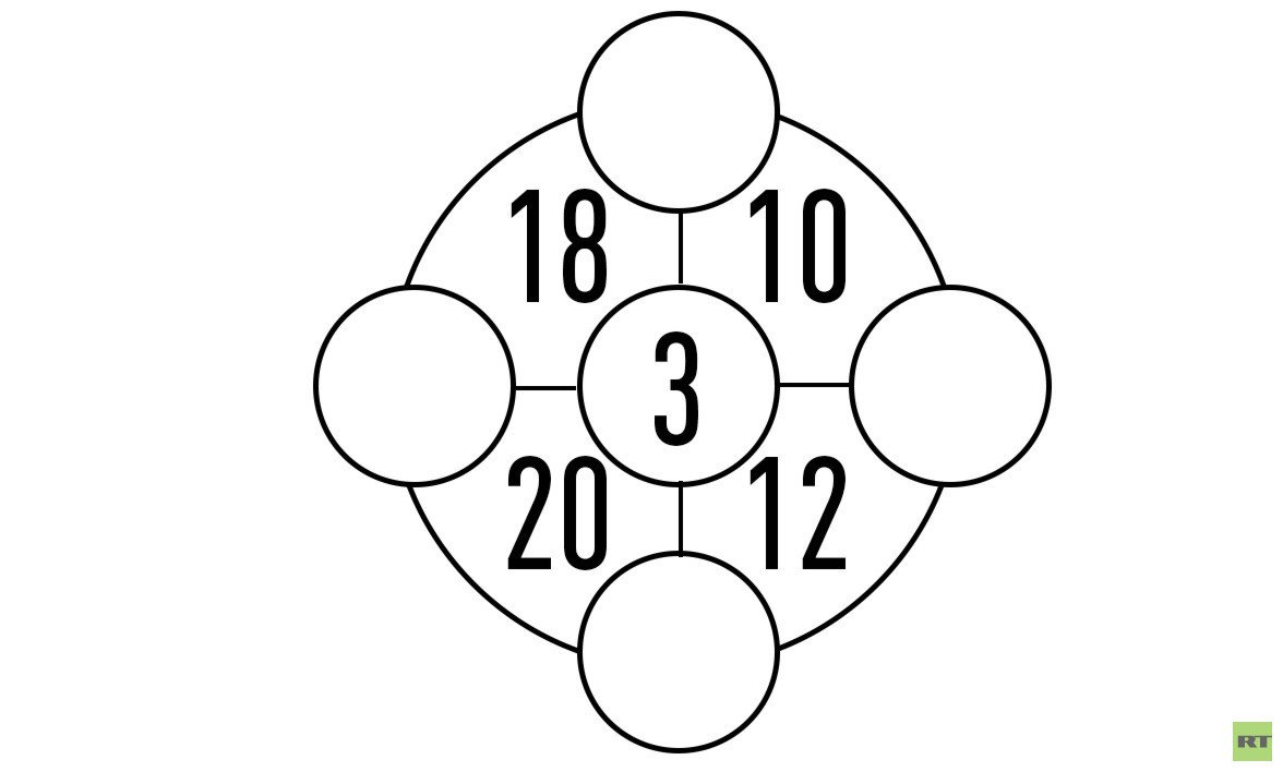 La tarea consiste en hallar las cifras que faltan en los cuatro círculos en blanco. En la propuesta compartida por este internauta, divide la figura en dos mitades. La suma de los números que escribe en los círculos y el 3 central se corresponde a la que se obtiene al sumar las dos cifras escritas en los cuadrantes del semicírculo donde se sitúan. Dado que no se puede verificar el resultado y las instrucciones son tan vagas, se permite la libertad de utilizar un número negativo para cuadrar las cuentas.