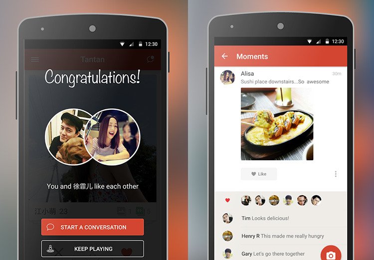Esta red social funciona como su análoga estadounidense Tinder: tras establecer diversos filtros, el usuario desliza hacia la derecha o la izquierda la imagen de las personas que aparecen en su pantalla en función de si le interesan o no. Tantan posee 1.800 millones suscriptores de pago, sus usuarios deslizan alrededor de 1.600 millones de imágenes al día y asegura que ha juntado a más de 582 millones de parejas.
