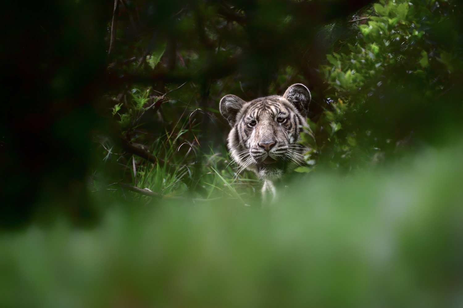 Las imágenes de un hermoso tigre de color pálido han sorprendido a los amantes del reino animal. Las fotografías de este raro felino en su entorno natural fueron captadas de manera inesperada por el fotógrafo Nilanjan Ray mientras conducía hacia la reserva de la biosfera de Nilgiri junto a un guia forestal, al sur de la India. Las imágenes, que fueron publicadas en su cuenta de Twitter y su sitio web, pronto se volvieron virales.