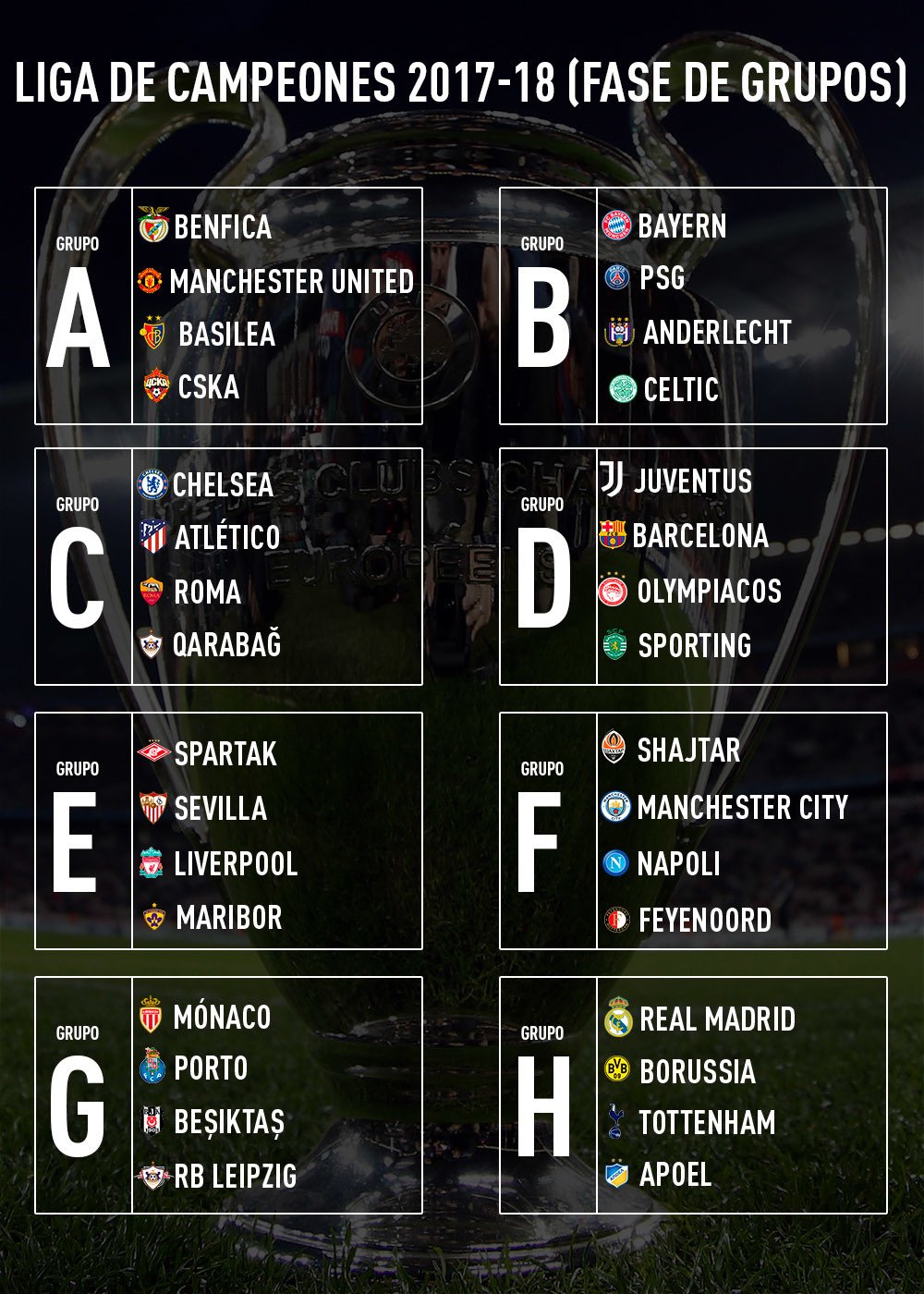 Mónaco ha sido este jueves el escenario de la gala del sorteo de grupos de la Champions League 2017-2018. Los mejores clubes europeos han conocido a los que serán sus rivales en la primera fase del torneo más prestigioso del fútbol continental.