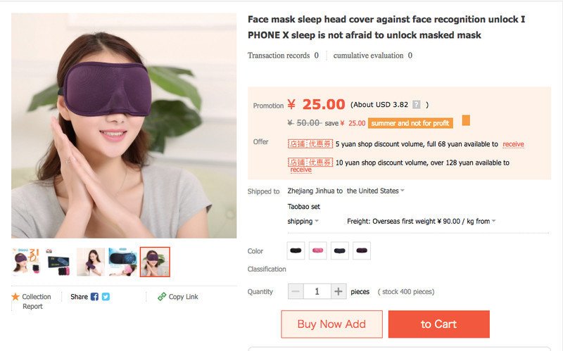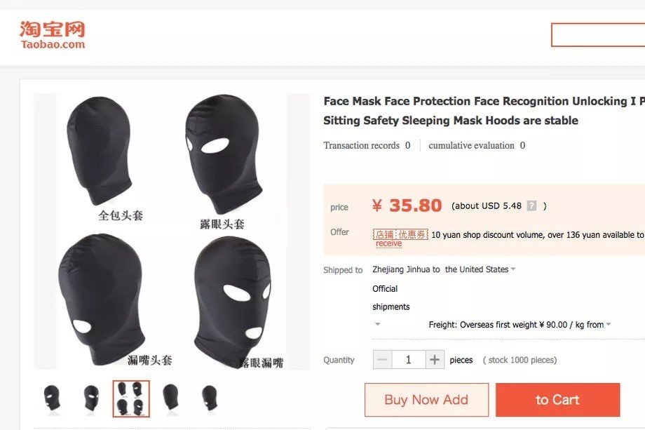 Unos días después del anuncio de la nueva función, en la tienda 'online' china Taobao aparecieron máscaras especiales, las cuales prometen proteger al propietario de un intento de desbloqueo del iPhone X utilizando su rostro. Los precios de las prendas oscilan entre los 25 yuanes (cerca 4 dólares) y los 888 yuanes (unos 135 dólares).
