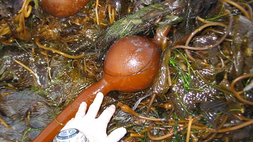 Sin embargo, muy pocos se percataron de que lo que trajo en realidad el mar fueron algas pardas de la especie Nereocystis luetkeana, que viven frente a las costa del Pacífico de EE.UU. a profundidades de hasta 20 metros. Sus tallos, cuya forma se ensancha desde la base hacia arriba, pueden alcanzar los 25 metros de largo. En el extremo superior se ubica la 'cabeza', una burbuja de hasta 20 centímetros de diámetro.