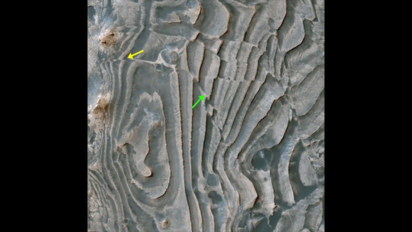 En su publicación, la NASA enseña con flechas en qué partes de la roca se hallan estas roturas. Estas fallas aparecieron en diferentes épocas, cuando las capas de roca se econtraban en diferentes etapas de endurecimiento, explican desde la agencia el origen de las deformaciones.