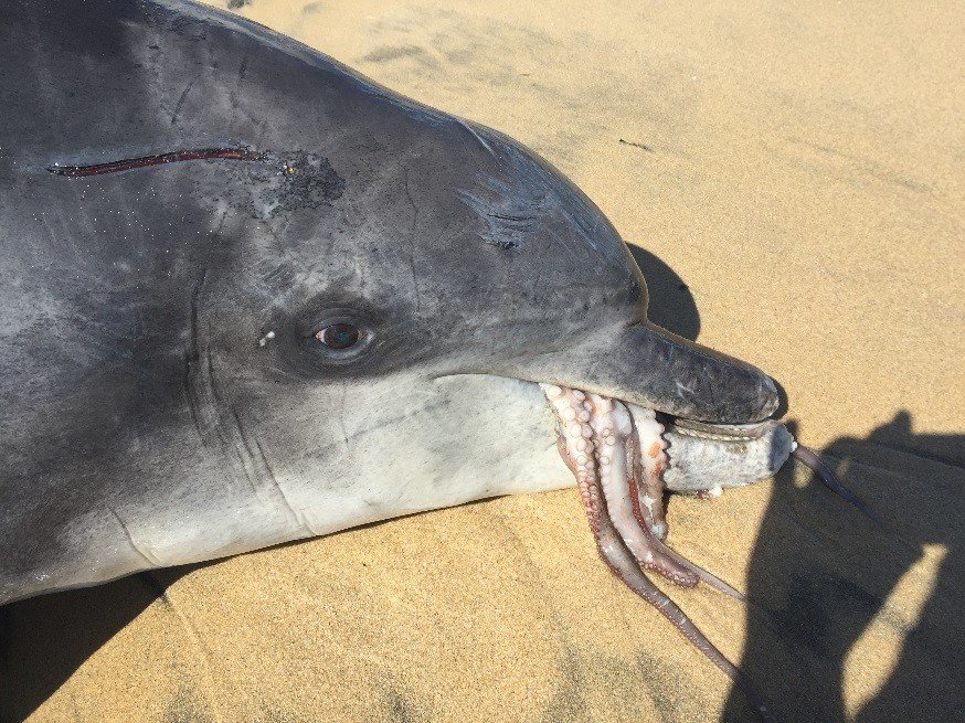 Nahiid Stephens, patóloga de la Universidad Murdoch de Perth y líder del estudio, asegura haber observado en varias oportunidades a delfines matando y devorando este tipo de moluscos, motivo por el cual la muerte del mamífero la sorprendió. Principalmente, dado el perfecto estado en el que se encontraba el cuerpo.