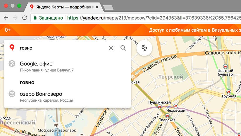 Así, los internautas detectaron que al introducir la palabra 'mierda' en ruso ('govno') en el servicio de mapas del buscador de Yandex, la primera opción que aparecía era la dirección de la sede de Google en Moscú. Cabe mencionar que el mismo resultado aparecía tanto en la aplicación móvil del servicio como en la versión web.