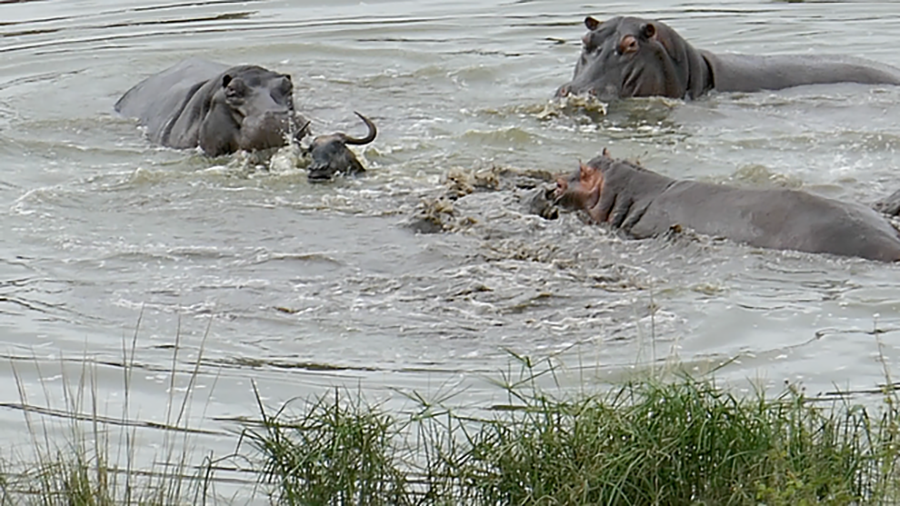 "Los hipopótamos siguieron [al ñu] hasta que este llegó a la orilla y logró salir del agua, pero su pata trasera estaba completamente herido y uno no pudo evitar preguntarse cuál sería la suerte que corrió con ella", relata el guía que acompañaba a la pareja de turistas.