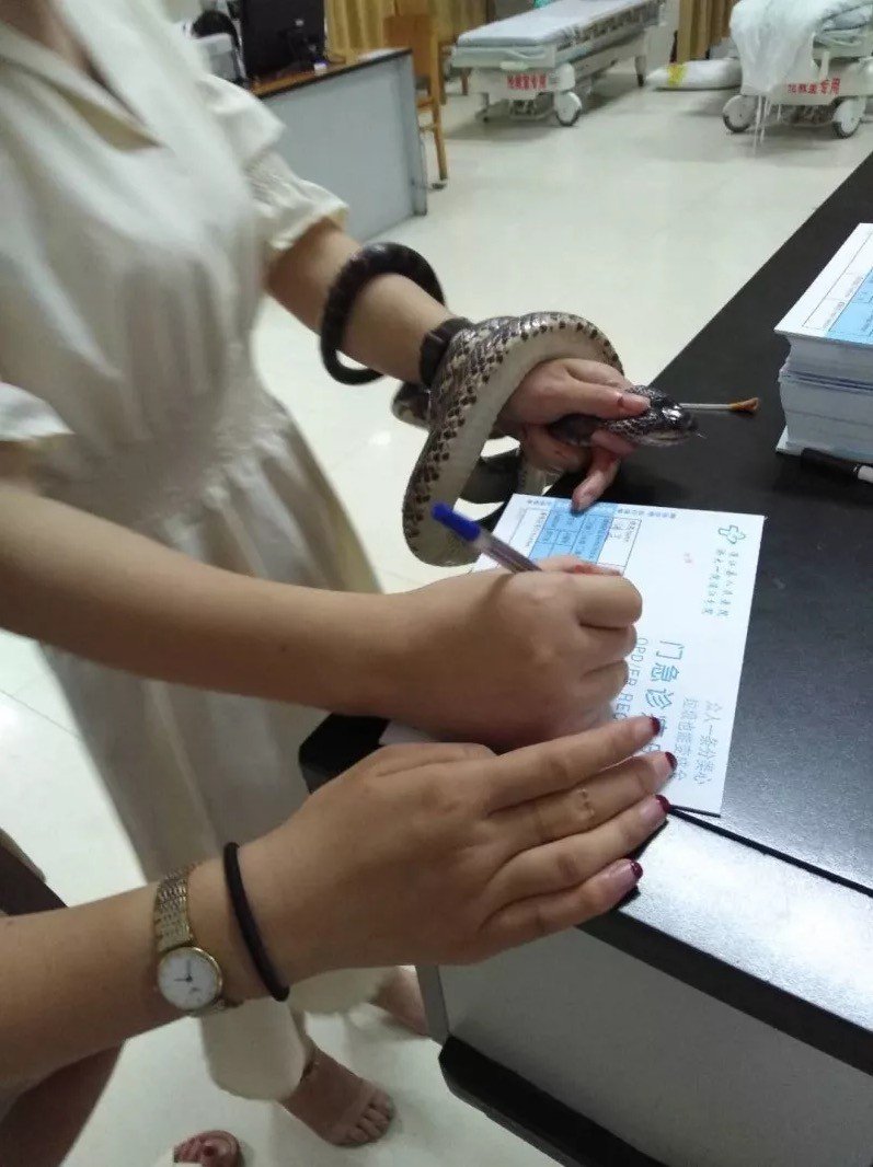 Una mujer de 20 años se trasladó al hospital llevando entre sus manos, fuertemente asida, una serpiente que la había mordido poco antes, de modo que los médicos pudieran identificar su especie. El suceso tuvo lugar este domingo en la provincia de Zhejiang (China).