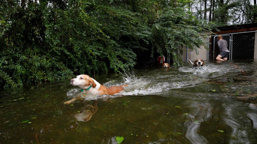 Un video captó el momento en que un heroico voluntario salvó a seis perros encerrados en una jaula que se llenaba rápidamente del agua de inundación provocada por el huracán Florence en el estado de Carolina del Norte (EE.UU.).