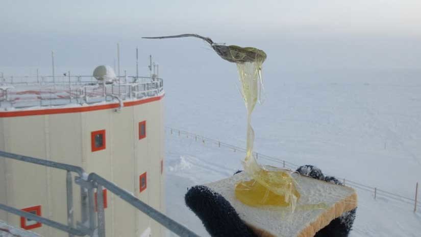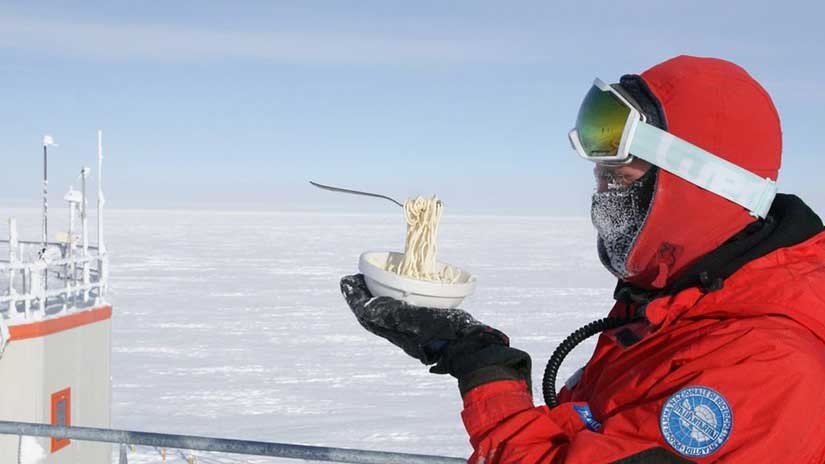 El personal de la base de investigación Concordia, en la Antártida, quiso mostrar las condiciones de frío extremo en las que desarrollan su trabajo de una manera original y compartió una curiosa foto en la página de Facebok de la Agencia Espacial Europea (ESA, por sus siglas en inglés). En la imagen se aprecian los efectos de sacar un cuenco de fideos al exterior de sus instalaciones: estos quedan completamente congelados casi al instante al exponerse a una temperatura de -60 ºC.