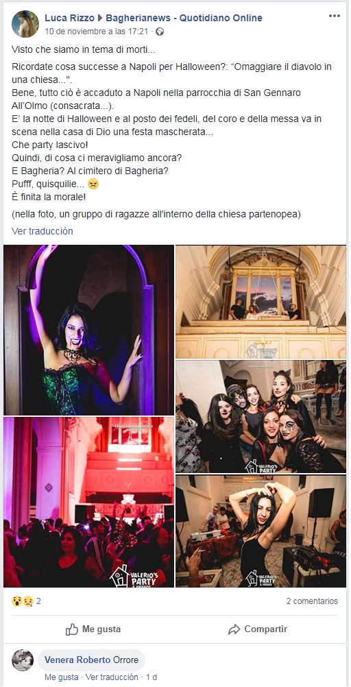 La indignación crece en Italia a medida que van saliendo a la luz nuevas imágenes de una fiesta de Halloween celebrada el pasado 31 de octubre en la parroquia de San Gennaro all'Olmo, en Nápoles.