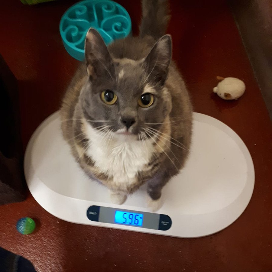 Todas estas idas y venidas al centro han convertido a Mitzi en una mascota malhumorada e influyen también en su peso. Sin embargo, ahora la gata ha logrado reducir su peso hasta 5,48 kilogramos, lo que posiblemente contribuirá a una rápida adopción.