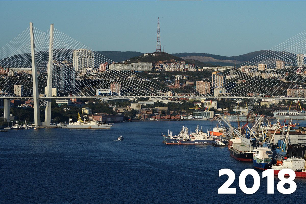 El puente del Cuerno de Oro en el Lejano Oriente de Rusia. Este puente atirantado cruza la bahía de Zolotói Rog (Cuerno de Oro, en ruso) en la ciudad de Vladivostok. Fue construido en preparación de la cumbre de la APEC 2012 e inaugurado oficialmente el 11 de agosto de 2012.
