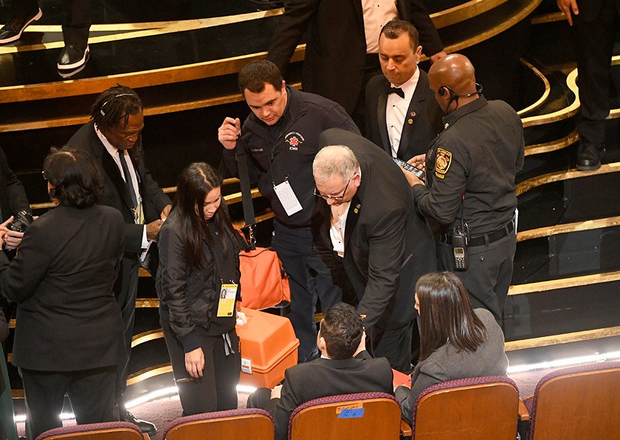 Una vez en su asiento, el intérprete fue atendido por paramédicos.