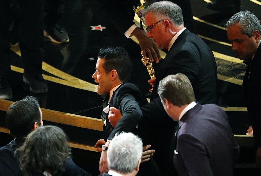 El actor estadounidense Rami Malek, quien recibió el Óscar a mejor actor por encarnar al cantante Freddie Mercury del grupo Queen en el film 'Bohemian Rhapsody', protagonizó una aparatosa caída durante la ceremonia de entrega de premios de la Academia de Artes y Ciencias Cinematográficas de EE.UU., celebrada el pasado domingo en Los Ángeles.