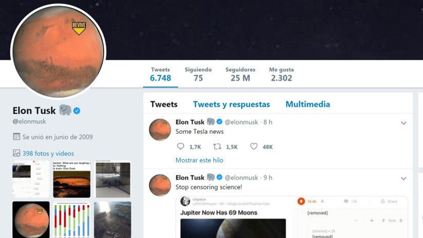 El director ejecutivo de Tesla, Elon Musk, ha cambiado este miércoles el nombre en su cuenta oficial en Twitter, en la que ahora aparece como 'Elon Tusk' y con el icono de un elefante.
