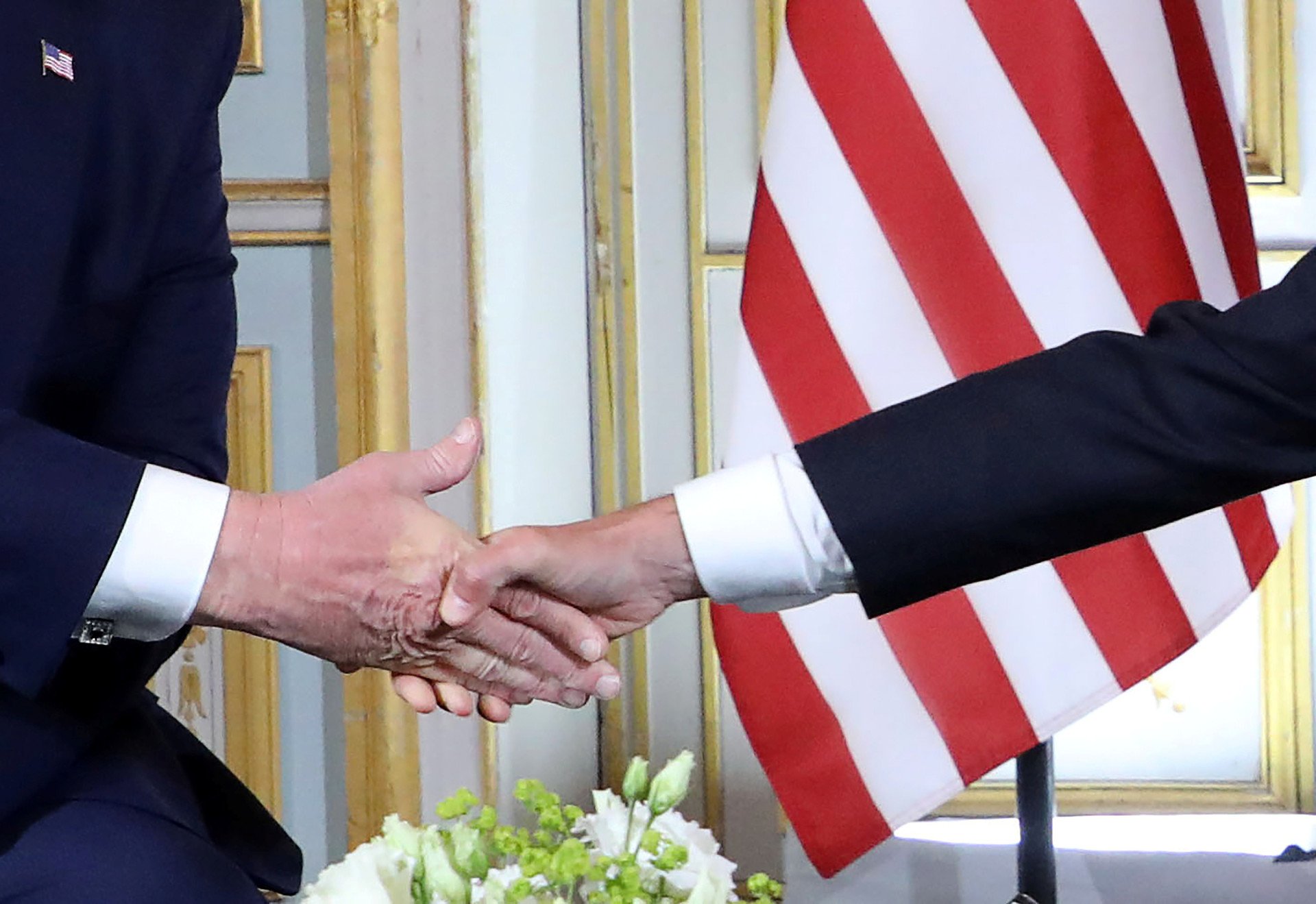 Asimismo, el pasado 25 de mayo de 2017, las cámaras captaron el prolongado apretón de manos que entonces el recién elegido presidente francés le dio a Trump, sosteniéndole además firmemente su brazo y al parecer durante más tiempo del que el estadounidense esperaba. Sin embargo, al volver a encontrarse con su homólogo estadounidense al día siguiente durante la cumbre de la OTAN, el propio Macron cayó víctima de la 'exclusiva técnica' del saludo de Trump, que se tomó la revancha al ejercer una gran fuerza mientras apretaba la mano del francés.