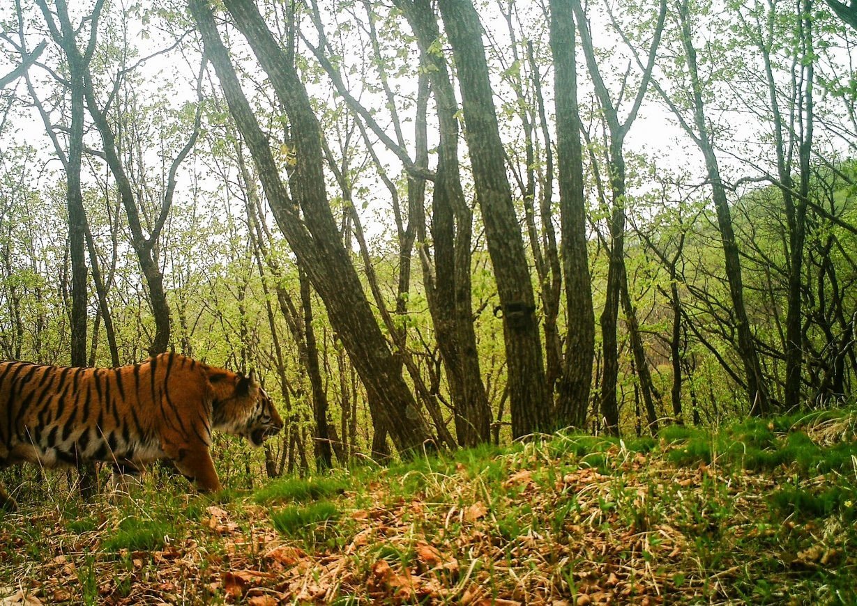 Una cámara camuflada en el Parque Nacional 'Tierra del Leopardo' de la región de Primorie (Lejano Oriente de Rusia) registró el momento en el que un tigre de Amur se hizo un selfi de manera involuntaria al acercarse a otro dispositivo similar ubicado en un árbol cercano.