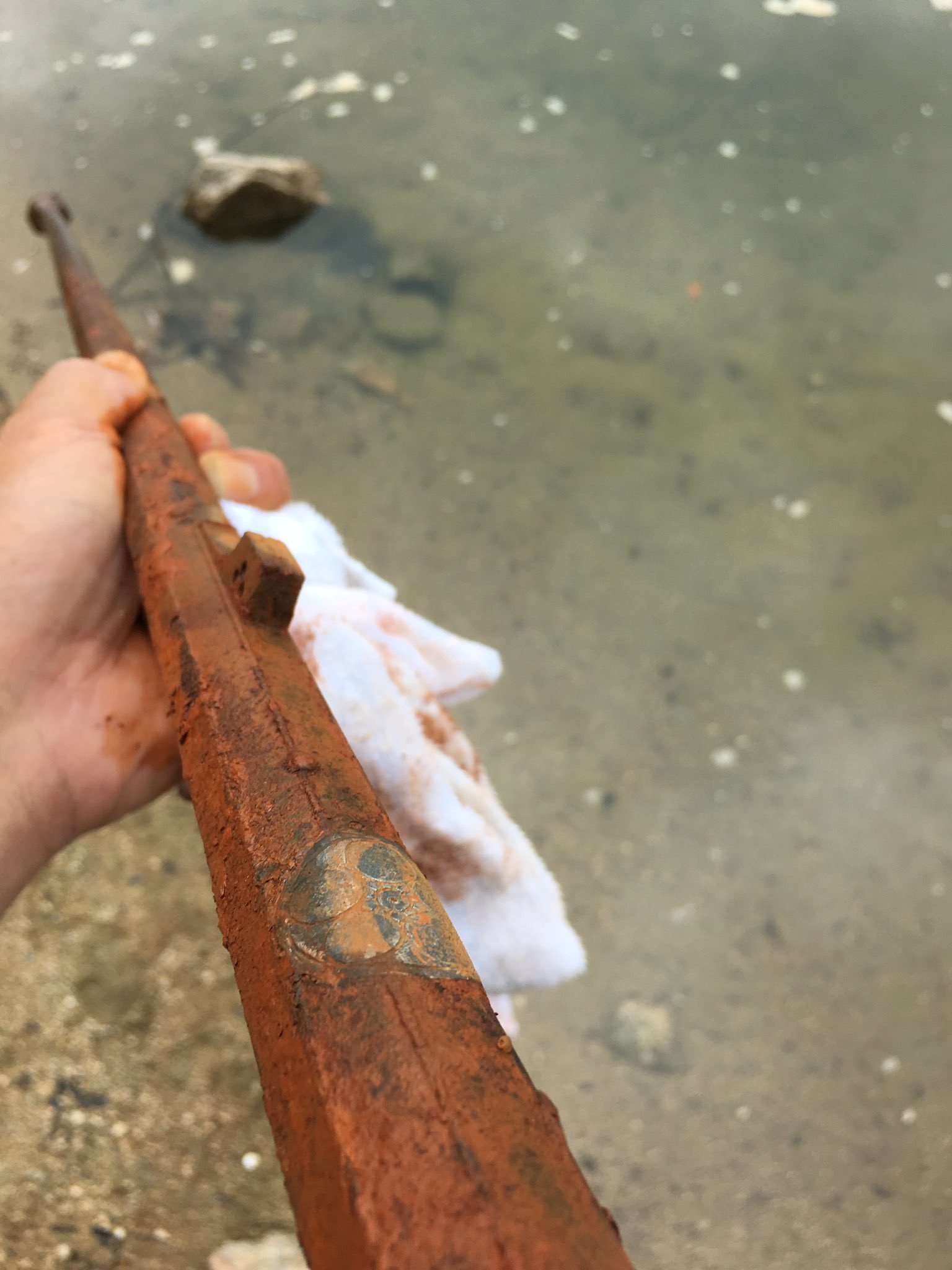 A finales de junio, un hombre llamado Hiro Himawari encontró un arma de fuego oxidada mientras pescaba en un estanque en la prefectura de Fukuoka, en la isla japonesa de Kyushu, y publicó imágenes de su hallazgo en su cuenta de Twitter.
