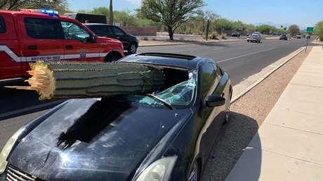 Aparatoso accidente con final feliz. Un conductor estadounidense se llevó un susto de muerte después de que un cactus de aproximadamente un metro y medio de largo se empotrara literalmente contra el parabrisas de su coche. Ocurrió el pasado miércoles a las afueras de Tucson (Arizona, EE.UU.), reporta AP.