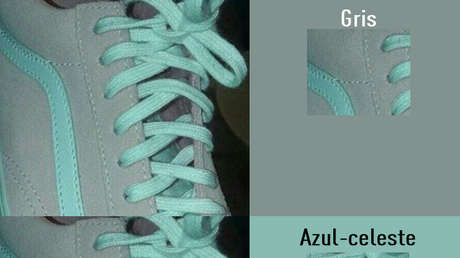 De hecho, el fabricante del modelo, Vans, lo vende en rosa y blanco. No obstante, el cuentagotas de cualquier editor de gráficos, sea Paint o Photoshop, le comprobará que los colores en la imagen son gris y azul celeste.