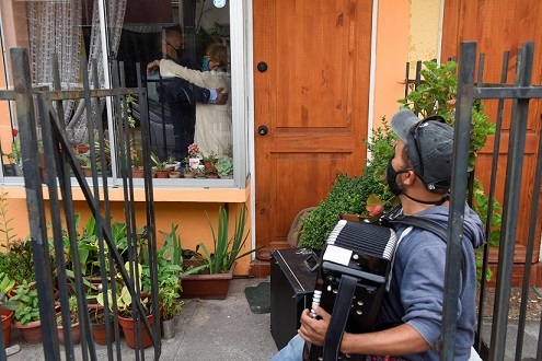 Desde el inicio del confinamiento y el aislamiento social por el brote, Gonzalo Acuña se ha acercado todos los días a la puerta del hogar en donde viven sus familiares —ambos adultos mayores y enfermos crónicos— y desde la calle toca para ellos su acordeón.