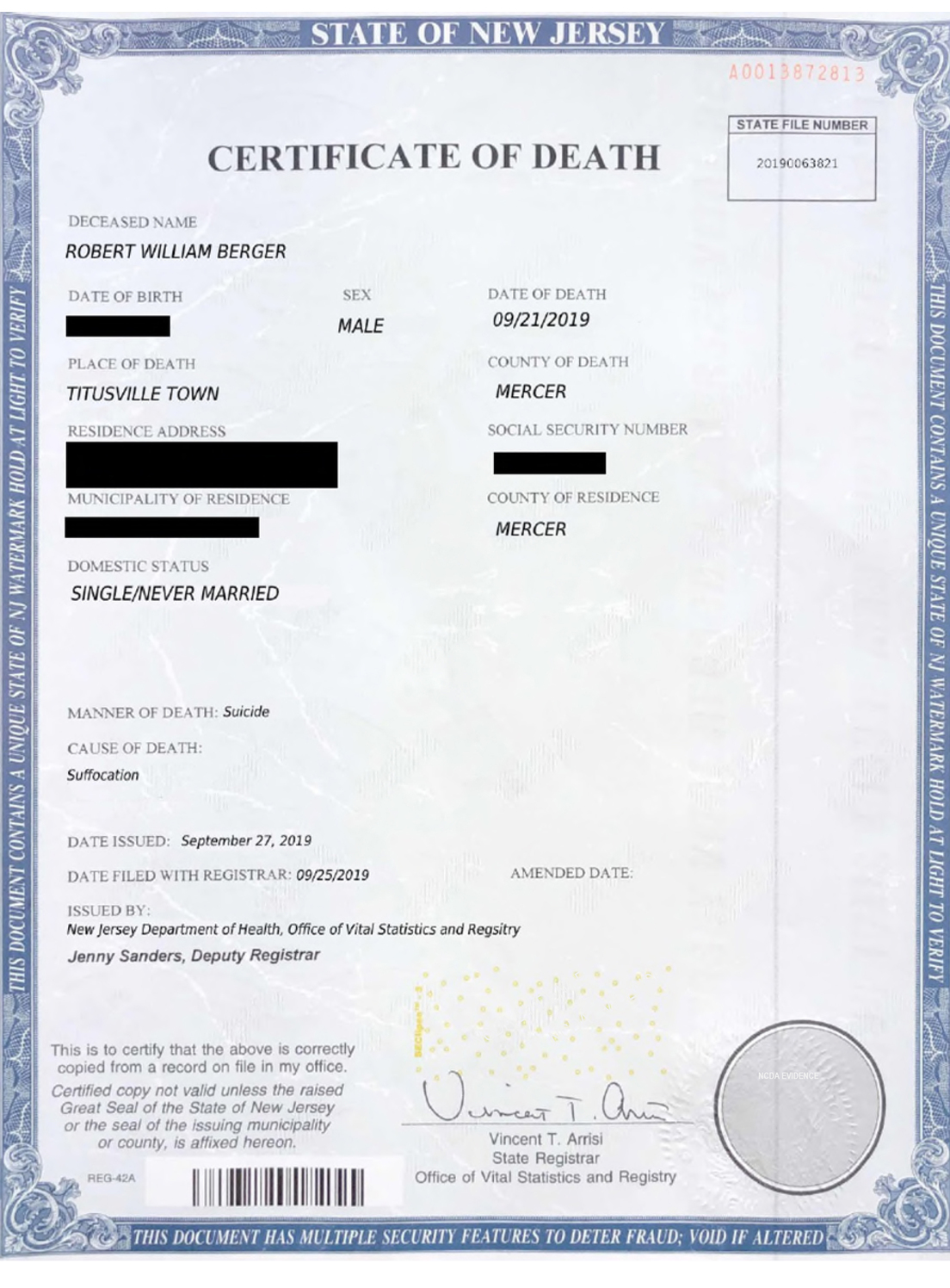Posteriormente, el propio departamento confirmó que el certificado de defunción presentado era falso. Ahora Berger enfrenta hasta cuatro años de prisión adicionales si es declarado culpable de fraude.