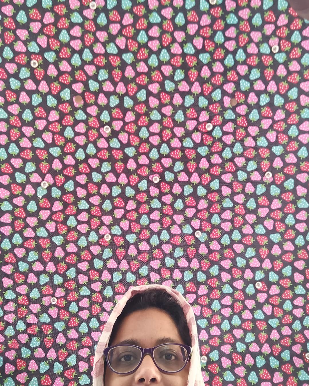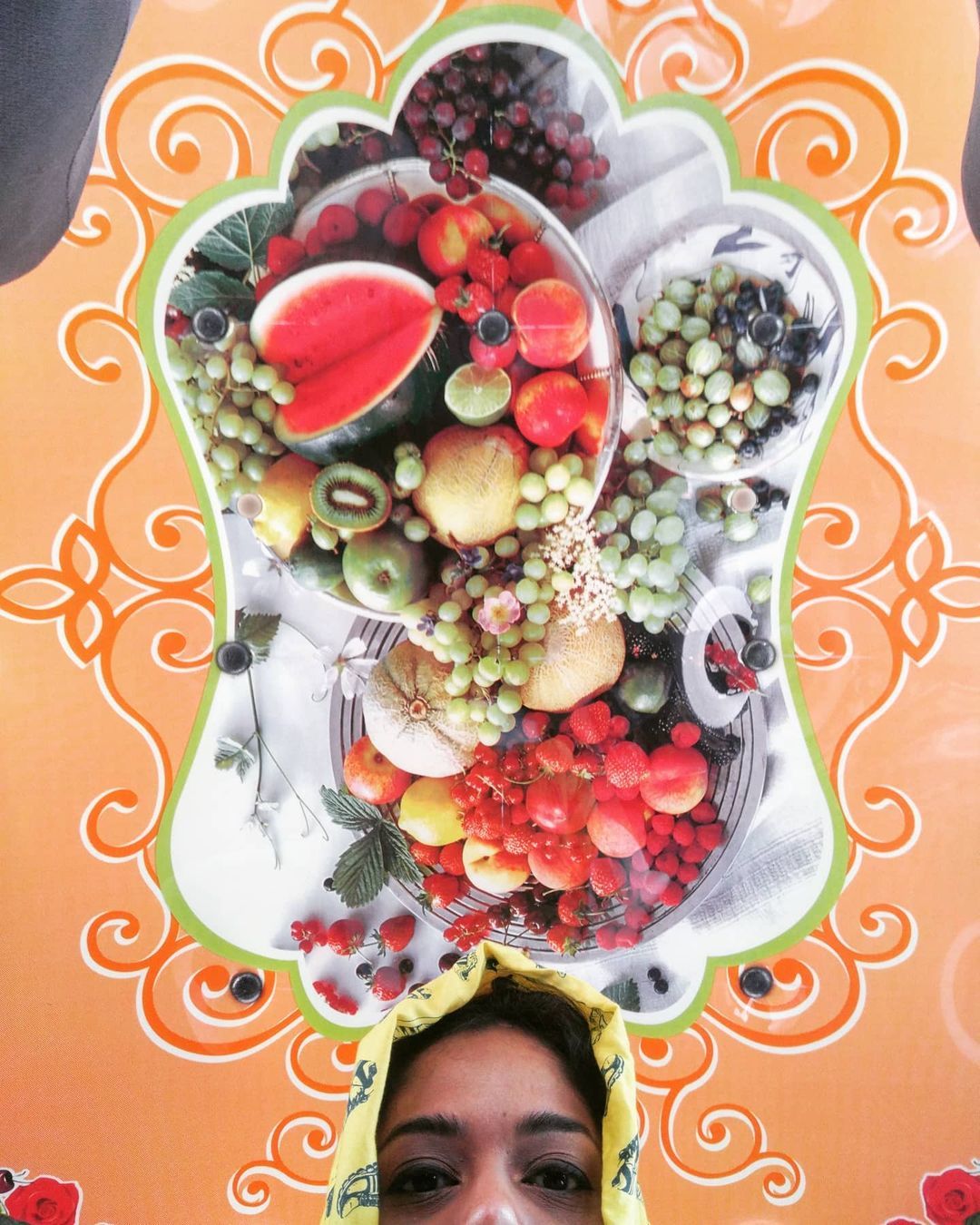 "Si tiene suerte, puede obtener el diseño de fruta común: fotos de melones, bayas, kiwis, incluso una papaya en rodajas, todo improvisado. […] Por supuesto, ninguno de los diseños ha coincidido con la tapicería de los asientos. Quizás el arte de los taxis de Bombay está destinado a ser chocante", relata la mujer.