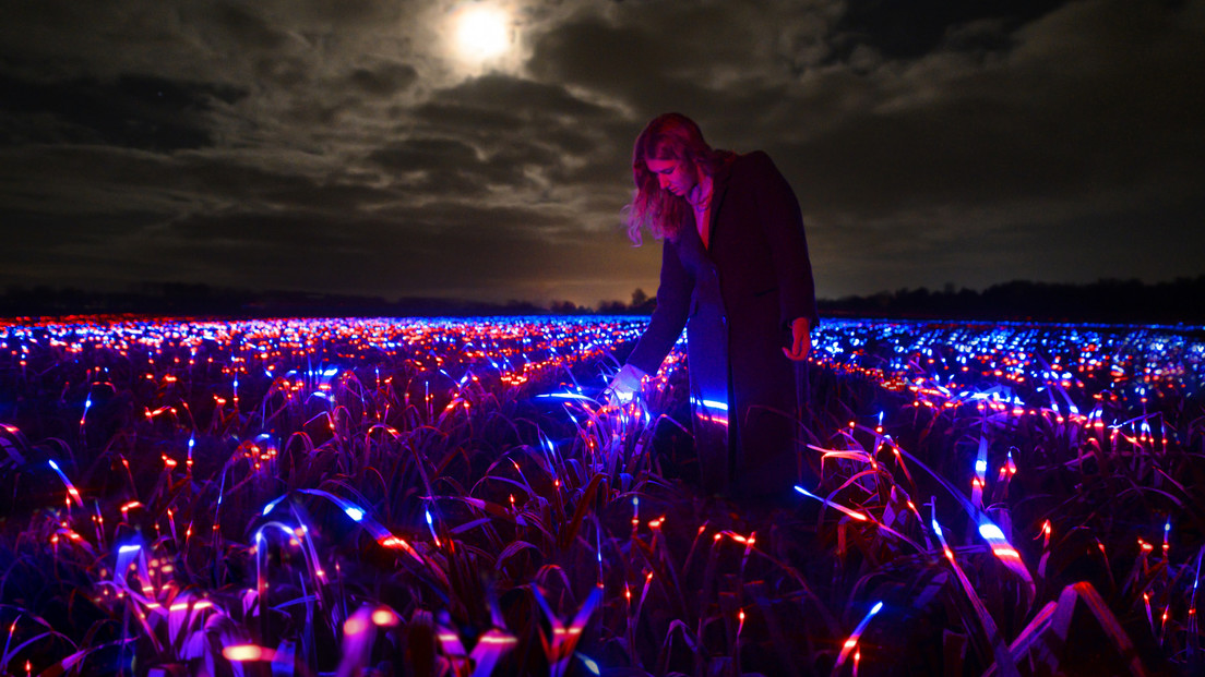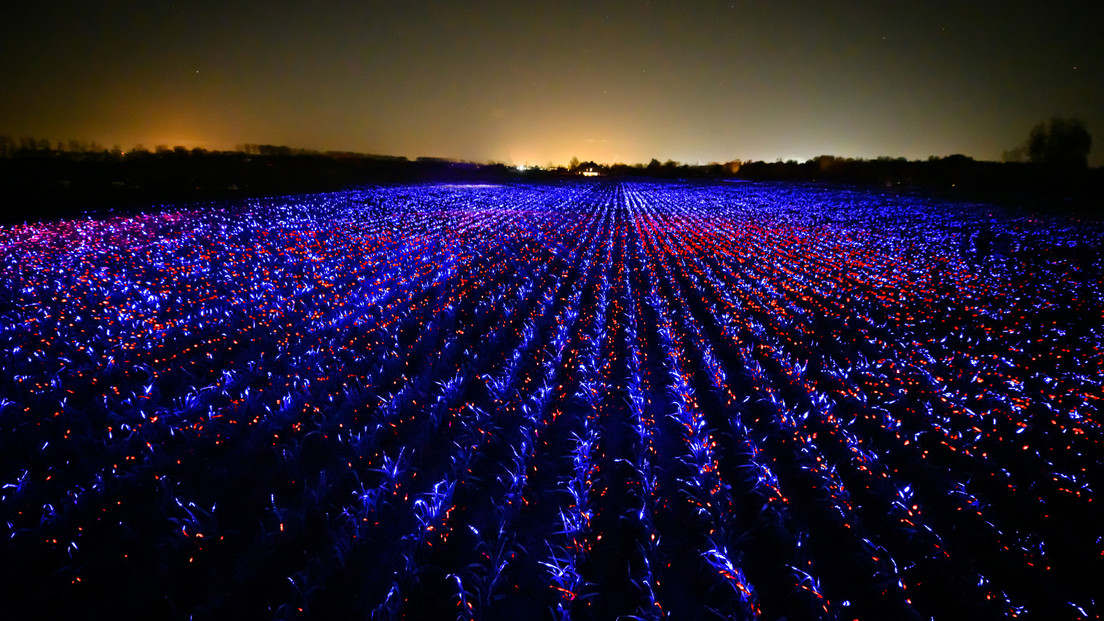El artista y diseñador neerlandés Daan Roosegaarde transformó un campo de puerros de 20.000 metros cuadrados, ubicado en los Países Bajos, en una instalación poco común con luces rojas, azules y ultravioleta que, además, ayudan a acelerar el crecimiento de las plantas y evitar el uso de productos químicos.