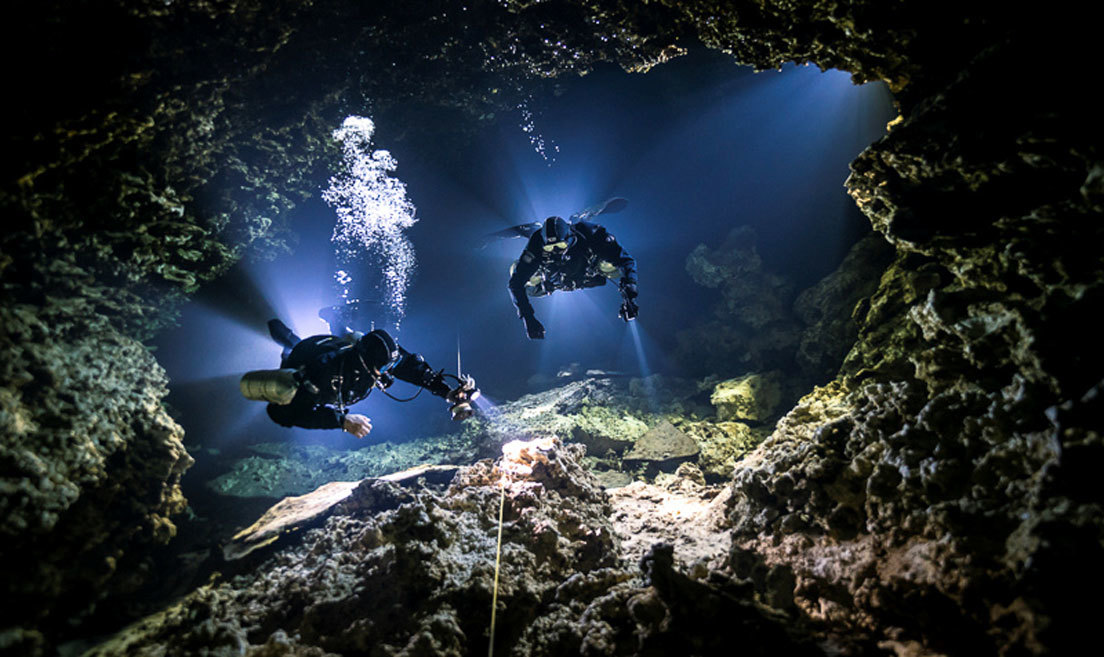 SJ Alice Bennett recibió el premio a Fotógrafo Submarino Revelación del Año por 'Tying In' (Atando cabos) capturada durante una expedición en las cuevas del Cenote Mayan Blue, del Sistema Ox Bel Ha, en Tulum (México).