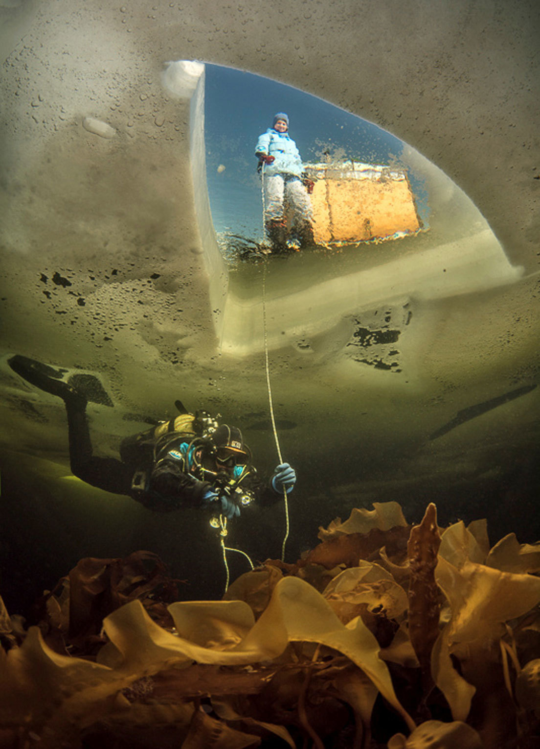 'Up Side Down' (Al revés), realizada por Álvaro Herrero en la Polinesia Francesa mientras trabajaba con ballenas, participó en la categoría Gran Angular y fue elogiada por lo novedoso de la orientación de la foto.