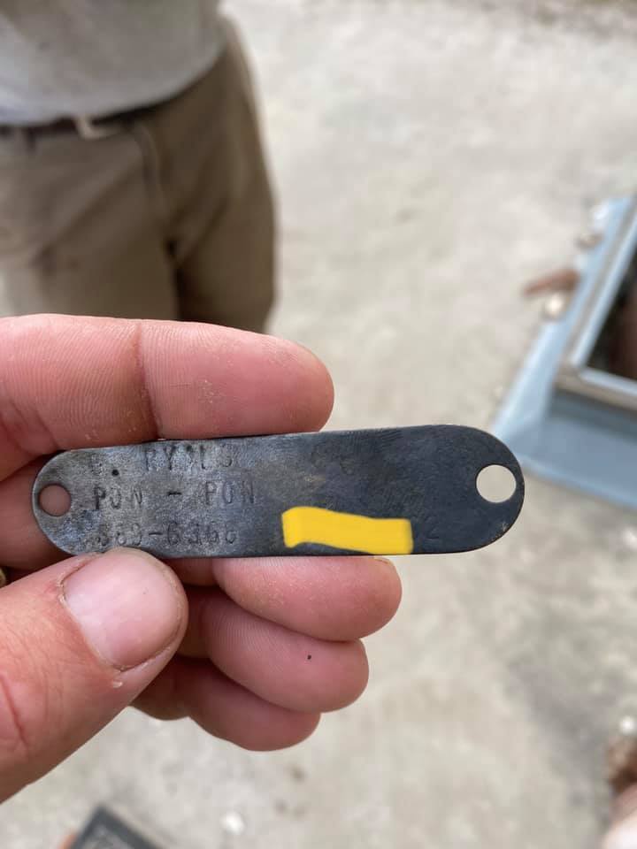 Entre los objetos hallados que llaman la atención destacan cinco placas de perro, dos con el número de contacto aún legibles, uno de ellos aún en servicio. Al llamar al teléfono indicado, un hombre confirmó que 24 años atrás había perdido a un perro de caza en el área cercana a donde fue capturado el reptil.
