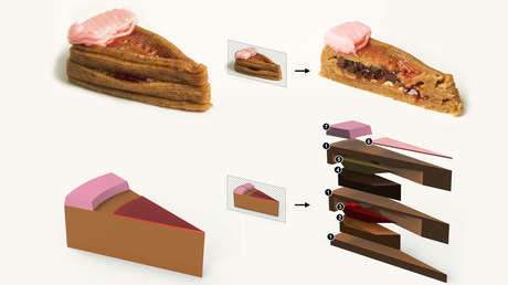 Un equipo de científicos estadounidenses ha creado una porción de pastel de siete ingredientes usando una impresora 3D, que combina un láser azul y otro infrarrojo cercano como aparatos de calentamiento de precisión.