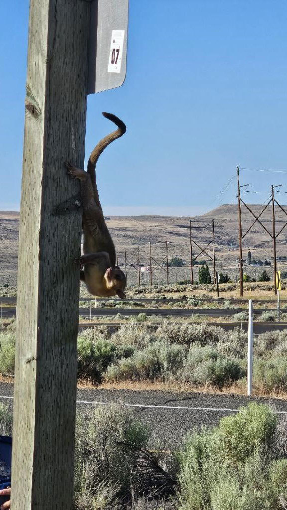 Hello from our friendly Kinkajou! What's that you say? It's a nocturnal rainforest animal. Why was it at our east Selah Creek Rest Area over the wknd? We have no idea, but our friends with Dept. of Fish & Wildlife rescued him. We don't know if it was dropped off or escaped. pic.twitter.com/1Xsyu8bOH2